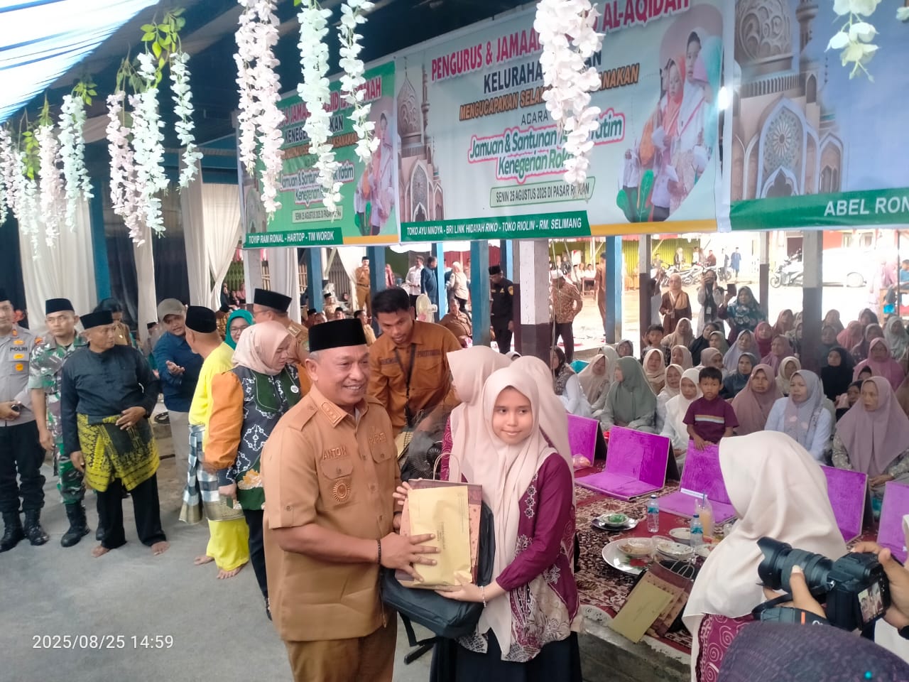 Rokan Hulu– Bupati Rokan Hulu, Anton, ST., MM, menghadiri kegiatan jamuan dan santunan anak yatim di Kenegerian Rokan IV Koto yang digelar di Los Pasar Kecamatan Rokan IV Koto, Senin (25/8/2025).